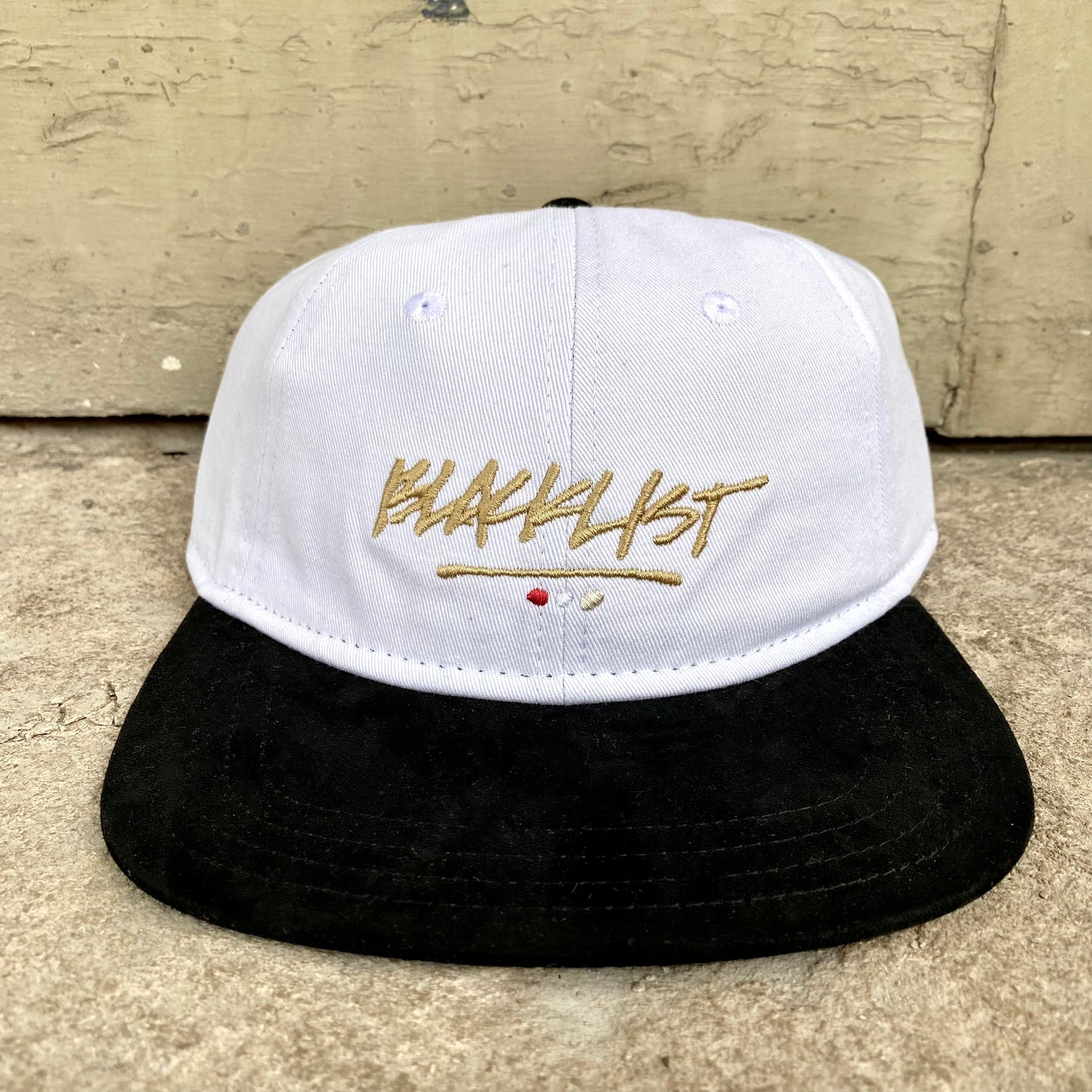 CREAM/TOBACCO OR WHITE/BLACK SUEDE BILL WITH LEATHER STRAPBACK.