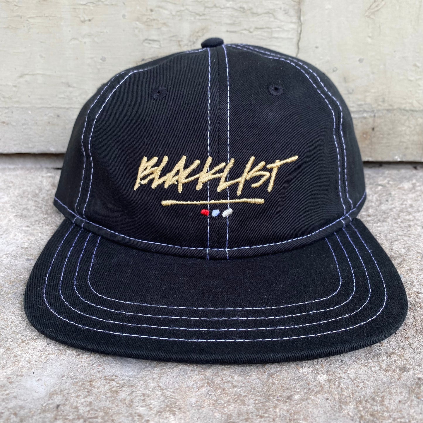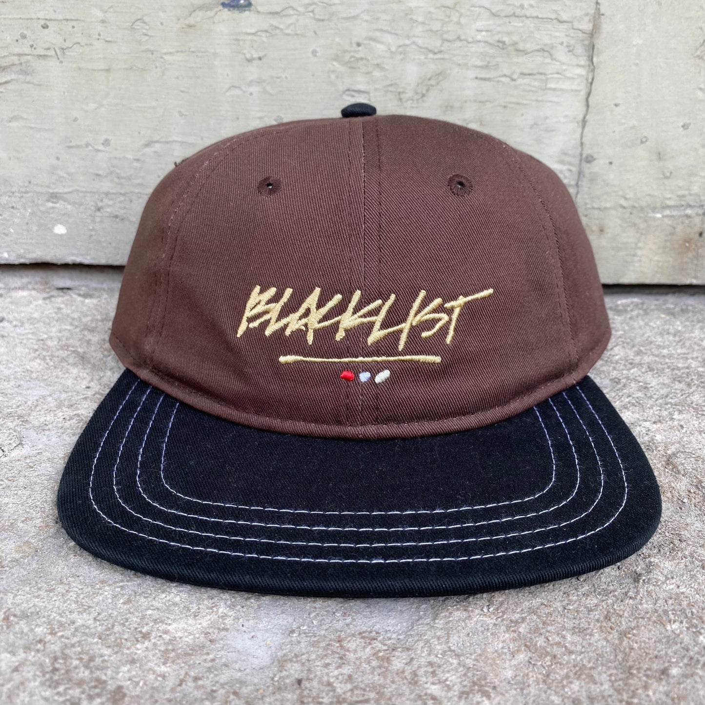 3 DOT EMBROIDERED LOGO ON AN UNSTRUCTURED LOW CROWN 6 PANEL CAP.
